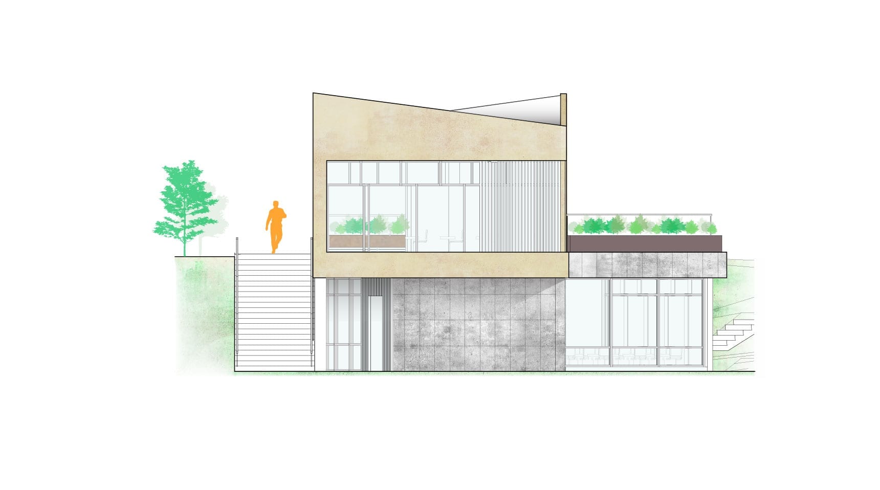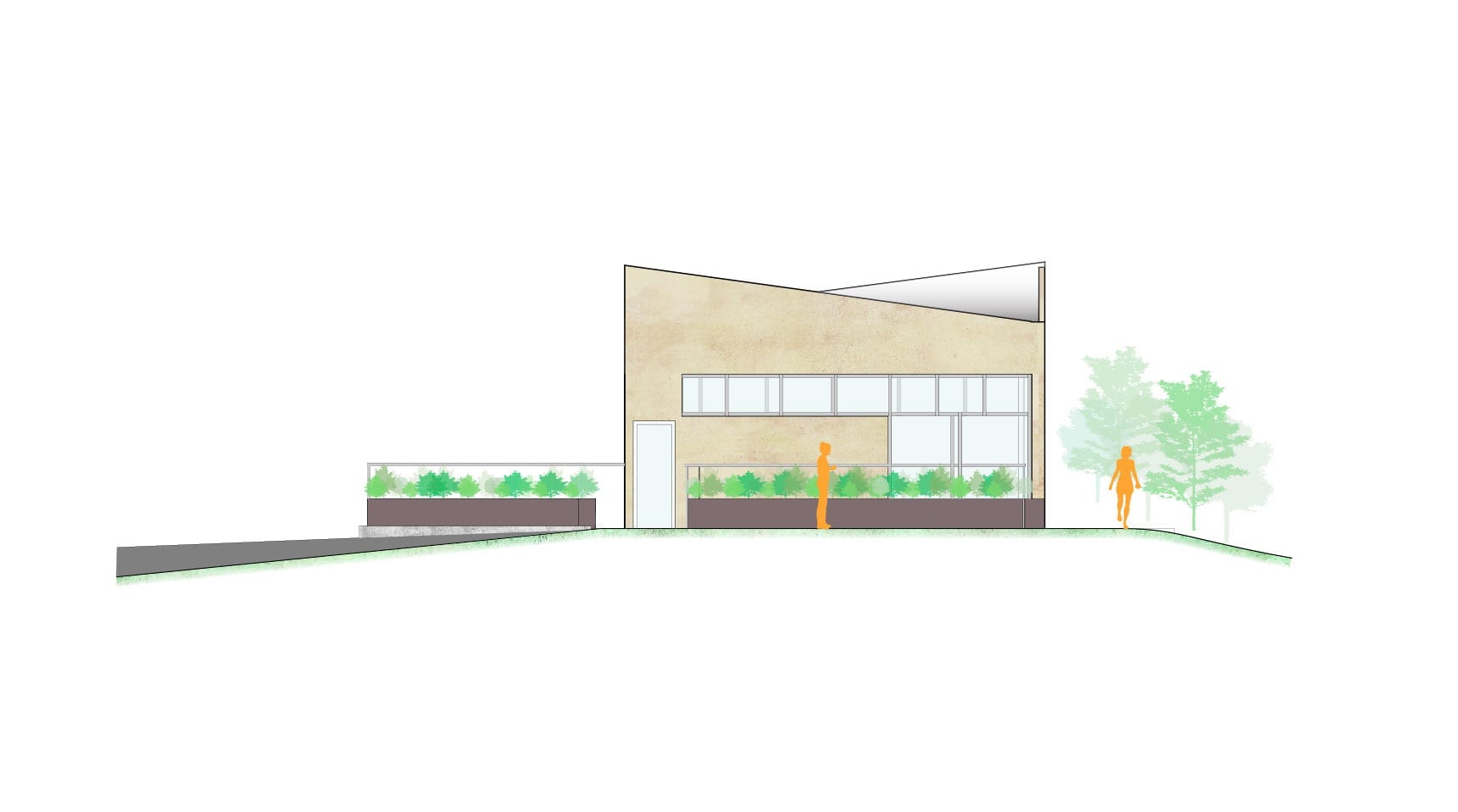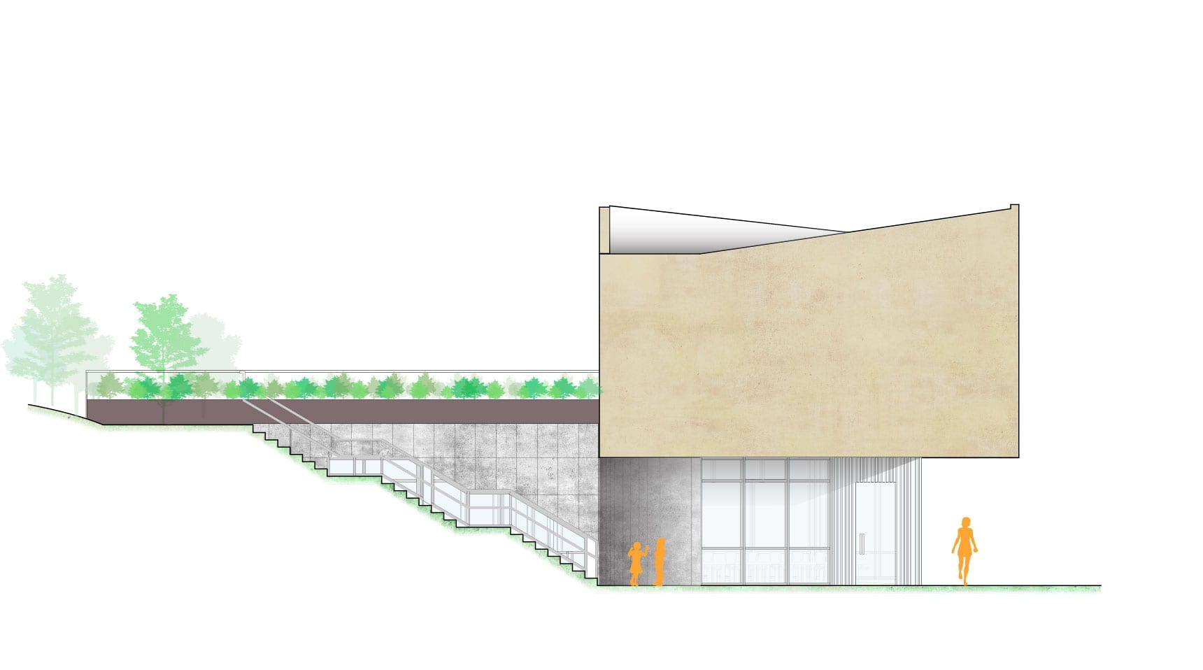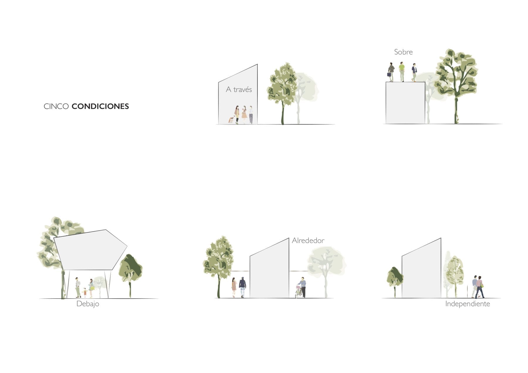 The building is composed of three classrooms, a meeting room, storage areas, a terrace for outdoor activities and an open square, intended to be the heart of the school. The project adapts to the environment through its insertion into the topography, it has a direct connection at the ground floor level with the plaza and at the top floor level with the green areas. The project sees the environment as an integral element of the educational experience through learning “above” and “within” the environment. That is why the existing circulation system of the school, through ramps, and the way they relate to the topography formed the most determining factors at the time of design. We were interested in reinforcing the condition of passing “through” and “under” the building, so the external circulations of the project is the integrating element.