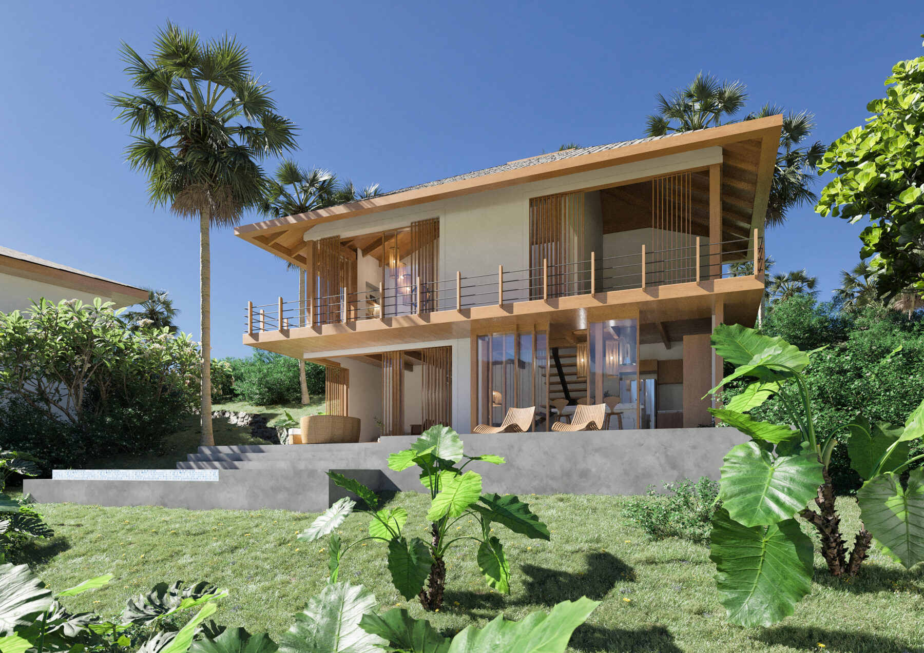 The spacious guest villages can be opened up completely to a personal terrace with an ocean view to the front and are surrounded by gardens with tropical plants in the rear. They count with an incorporation of an open kitchen setup which provides a modern and unique ambiance to traditional architectural elements. The floor-to-ceiling doors have direct openings to the exterior and connect the interior areas of the village with the rest of the environment. This project represents the first phase of of a project that will have more little villages and new amenities in the future.