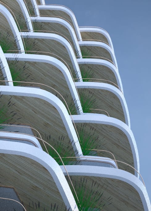 Puerto Ballesta is inspired by nature and its local environment. There is an intention to move through a parametric pattern that gives a set of balconies that break with the rhythm of homogeneity and give a more informal and natural experience.
