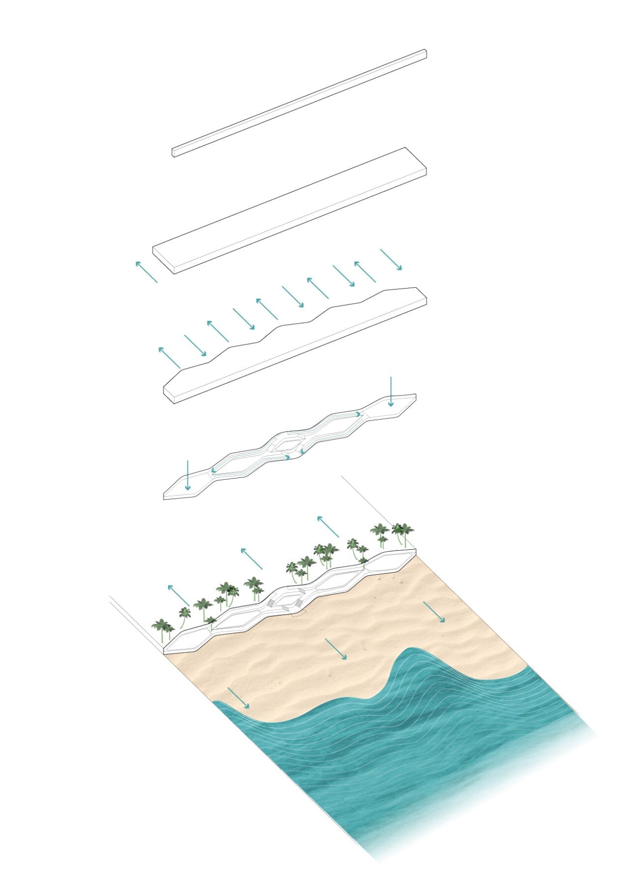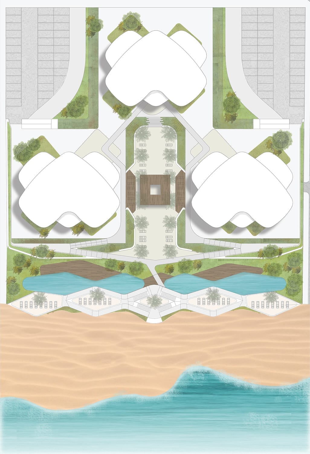 The formal conceptual design is incorporated throughout the complex including infrastructures such as the retaining wall which typically has a purely structural function. We incorporate a new experience for the user that is in turn aesthetically interesting.