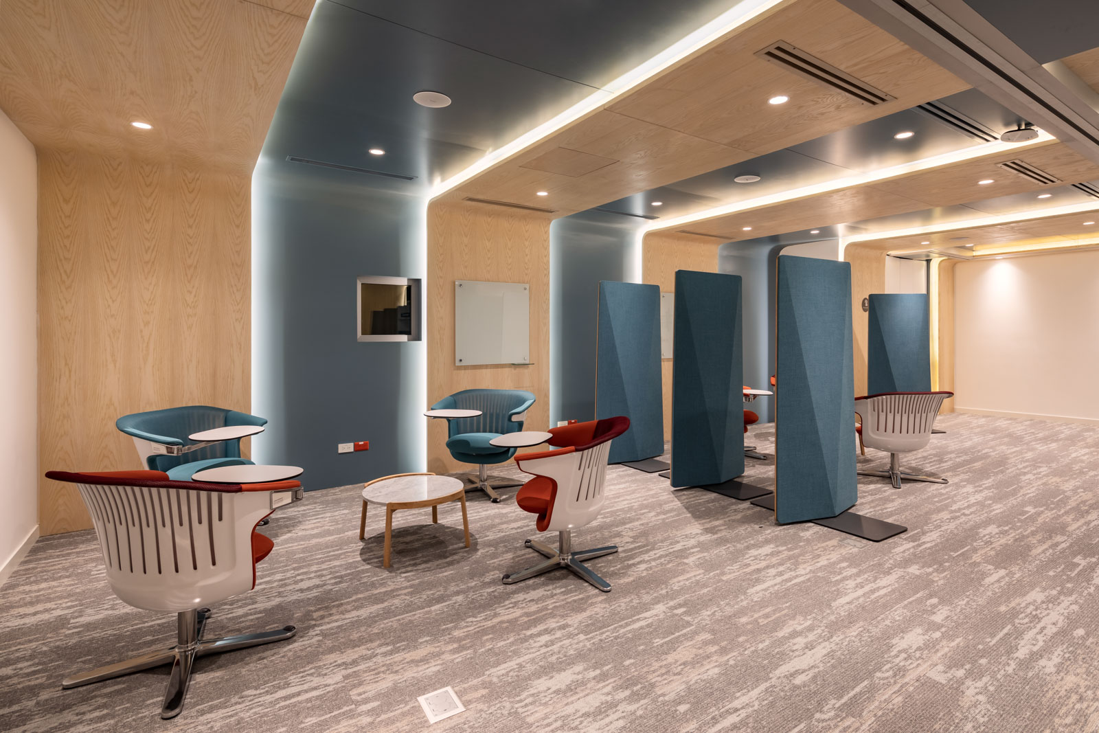 We wanted to renew the office concept, since lately all the spaces have had to be rethought due to the Covid-19 situation. For this reason we began to analyze the necessary requirements to create a functional space. The main objective was to design a space where people can feel good and safe. This offices incorporate a concept of flexible spaces with vertical mobile panels which allow individual work spaces to be large or slightly smaller according to the need or to the group of people. Additionally, it includes shapes that reflect more organic and people-friendly elements. Therefore, there is an emphasis on curved elements, curved walls within the space in order to have a little more fluidity.