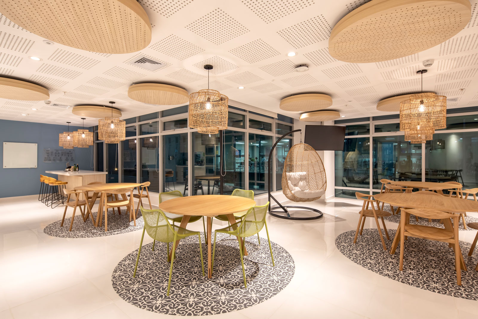 These new offices were designed in the transition process towards an office model which, above all, pays special attention to the welfare and safety of the workers. The office design resumes its trend towards open and shared spaces with an ingredient of collaboration, socialization, and connection to technological tools. It has been designer to provide a flexible environment through silent and private spaces, as well as collaborative spaces such as meeting rooms and rest areas. This to increase productivity, health, and provide safety for the occupants. Since the project is located in Ecuador, it counts with a good and sustainable wood industry with a wide range of options including wicker, which is a vegetable fiber obtained from a shrub in the salix willow family. It is a characteristic material from the province of Manabí and it can be found it in furniture, lamps and baskets. Basketry and wicker are included not only because of the natural properties it provides to the space but also as an element of local identity.