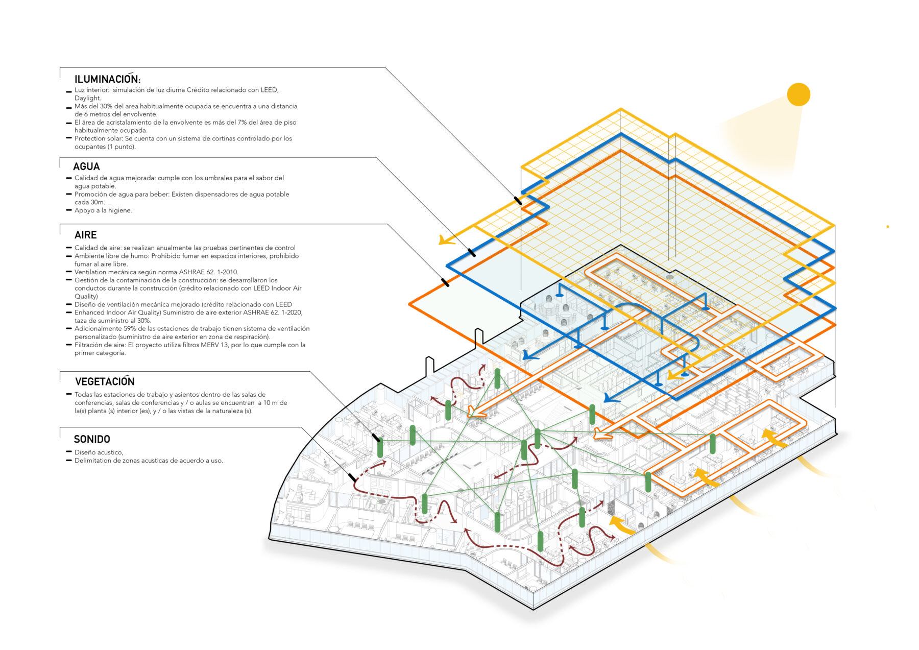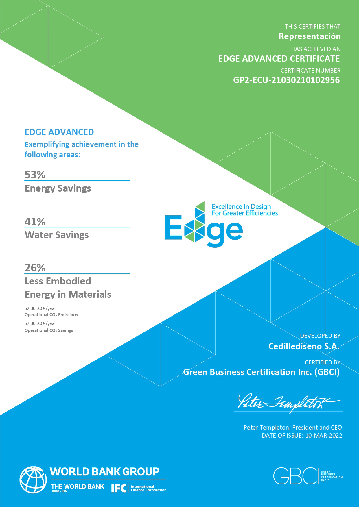 The term humanized architecture is fundamental. The fluid design concept is based on finding a balance between natural elements and built elements. With local identity in the use of materials, art, and execution. The project obtained 3 sustainable certifications LEED Platinum, EDGE Advance and FITWELL). These are the first offices in Ecuador to obtain such high levels of efficient technological prestige. Thanks to joint work on sustainability, the following levels of savings were achieved: Recycling of materials during construction: 51% – Water 45% – Energy 22%