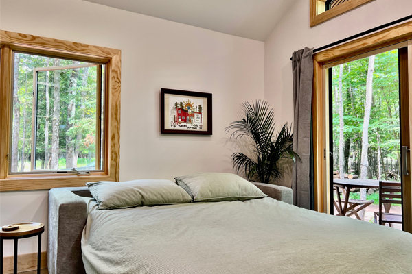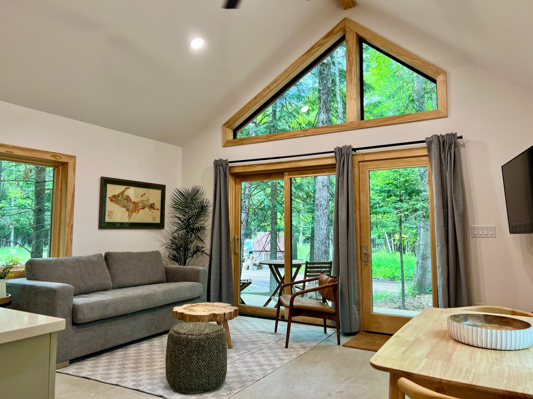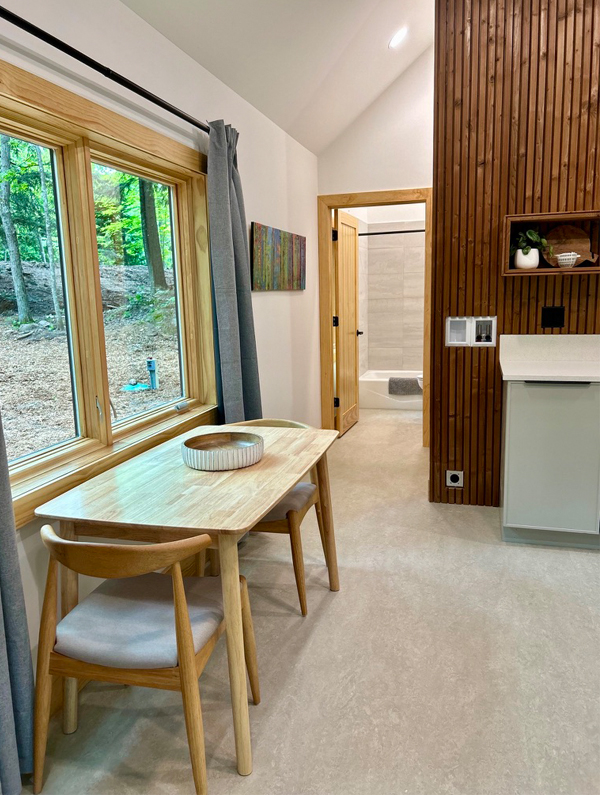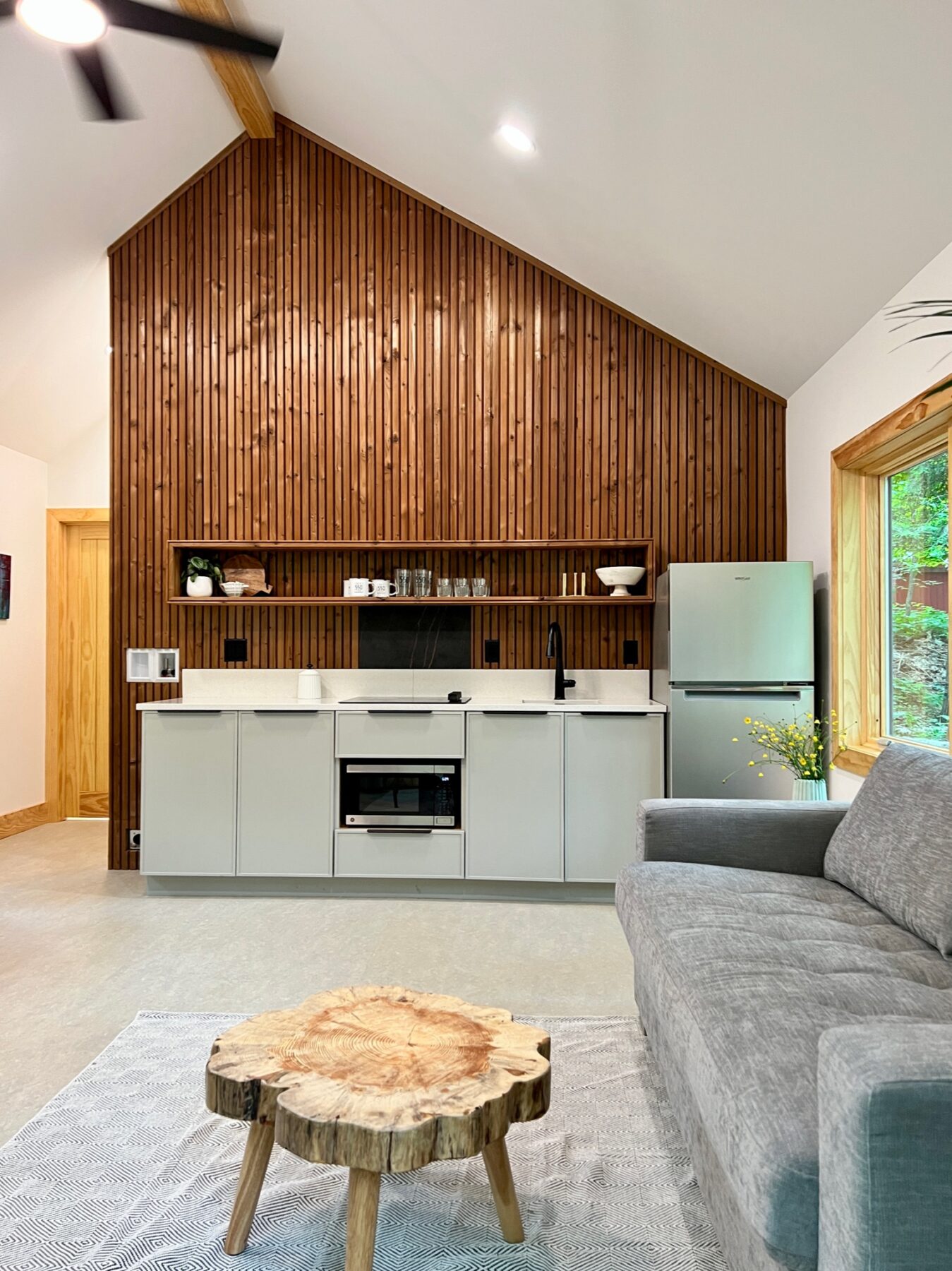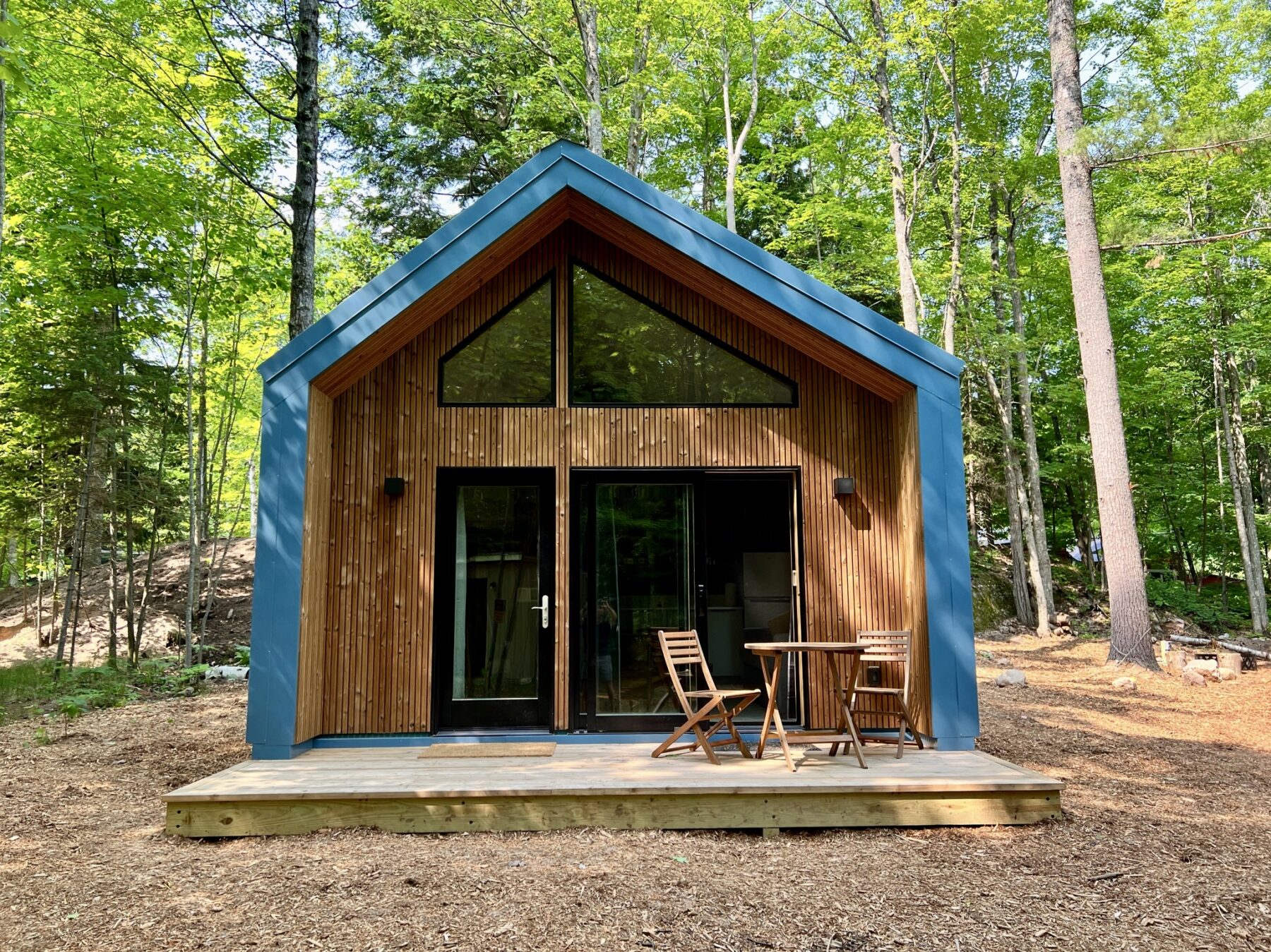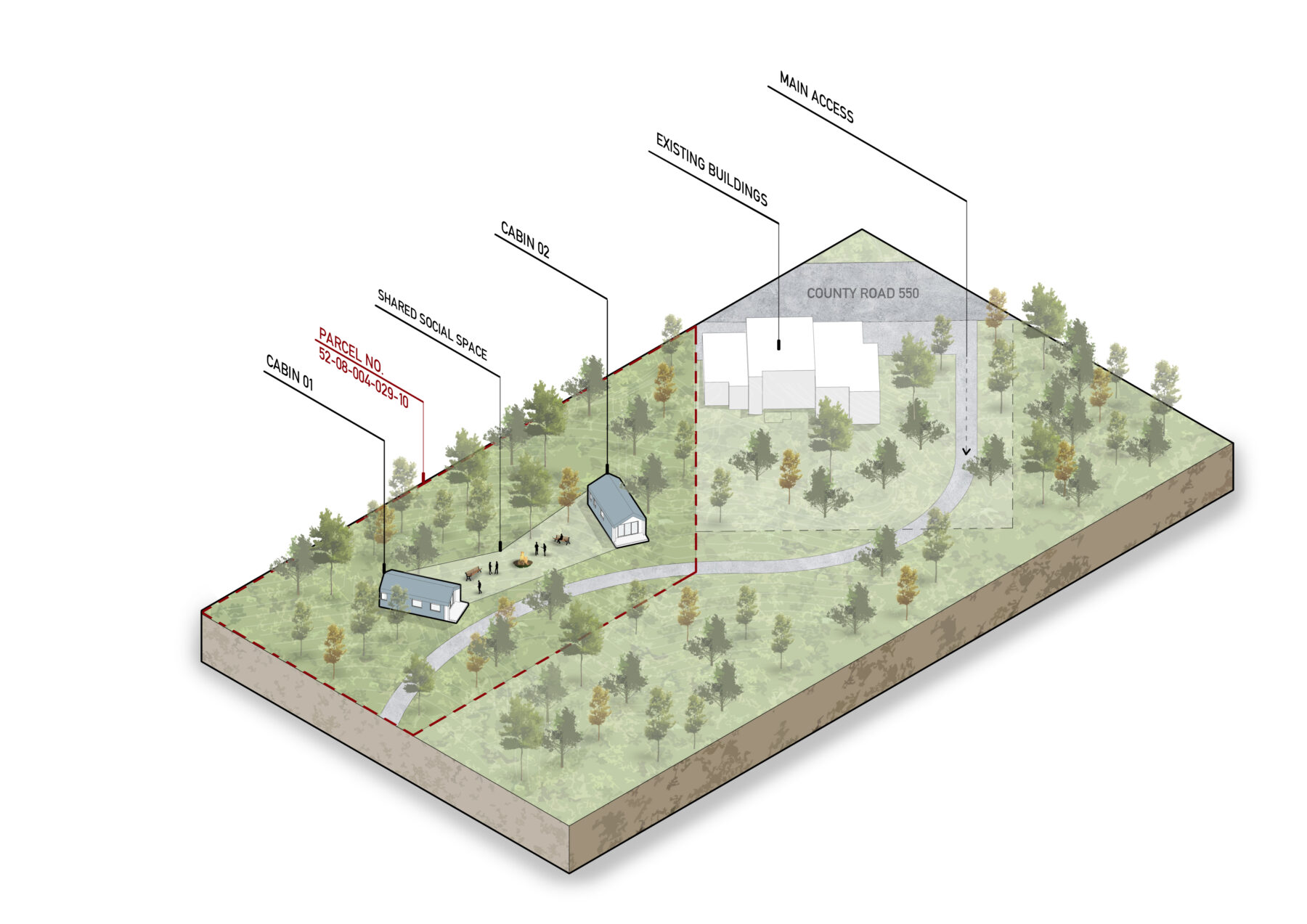 Este proyecto tiene como objetivo crear un espacio conformado por cabañas modulares. Cada cabaña se puede adaptar fácilmente en el sitio y ha sido diseñada para maximizar el uso del espacio mientras conecta al usuario con la naturaleza y el paisaje al aire libre. Estas unidades modulares consisten en marcos de madera con una fachada de metal en los lados. El volumen principal está compuesto por un techo a dos aguas y un panel frontal de vidrio que permite que el espacio interno se fusione con el ambiente exterior.