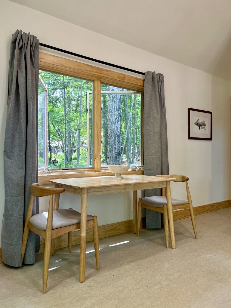 Además, el programa se extiende hacia el exterior a través de una zona de cubierta. El área interior se caracteriza por el material de madera en algunas paredes y en el piso que contribuye a la sensación de comodidad y relajación. Son accesibles desde el camino existente en el sitio y en el medio comparten un espacio común que se convierte en un área social.