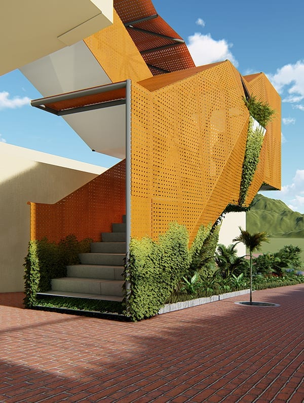 Liceo Campoverde es una escuela ubicada en un valle cerca de la capital. Su objetivo principal es promover la sostenibilidad a través de métodos educativos y constructivos. Leppanen Anker recibió el encargo de desarrollar un plan maestro para la expansión de la escuela que incluye una biblioteca, cafetería, auditorio, bloque para la escuela secundaria y varias áreas al aire libre.