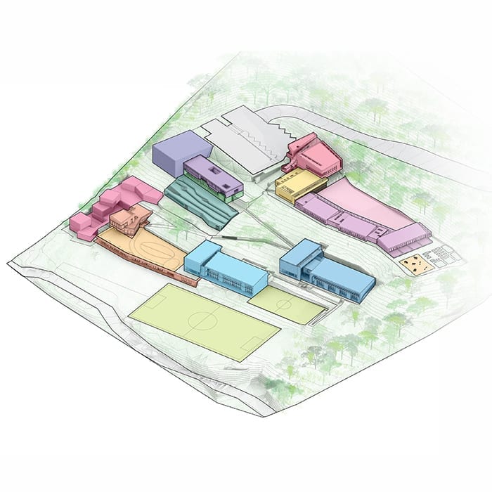 El cliente tenía un gran interés por preservar las áreas verdes y respetar la topografía, que era un icono de la escuela. El concepto principal del plan maestro era crear un “parque educativo” que permitiera la creación de entornos de aprendizaje.