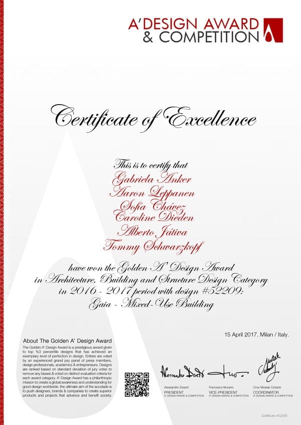 • A’DESIGN AWARD / 2016-2017 | Golden A Design Award en arquitectura, construcción y diseño de estructuras.