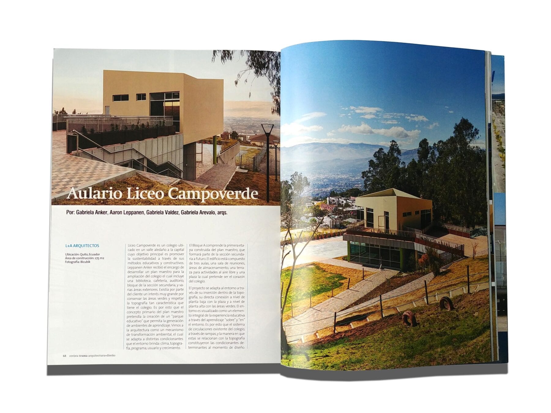 Aulario Liceo Campoverde en revista Trama 2018                    / Edición 149- Revista Trama, arquitectura+diseño- pg 68-71