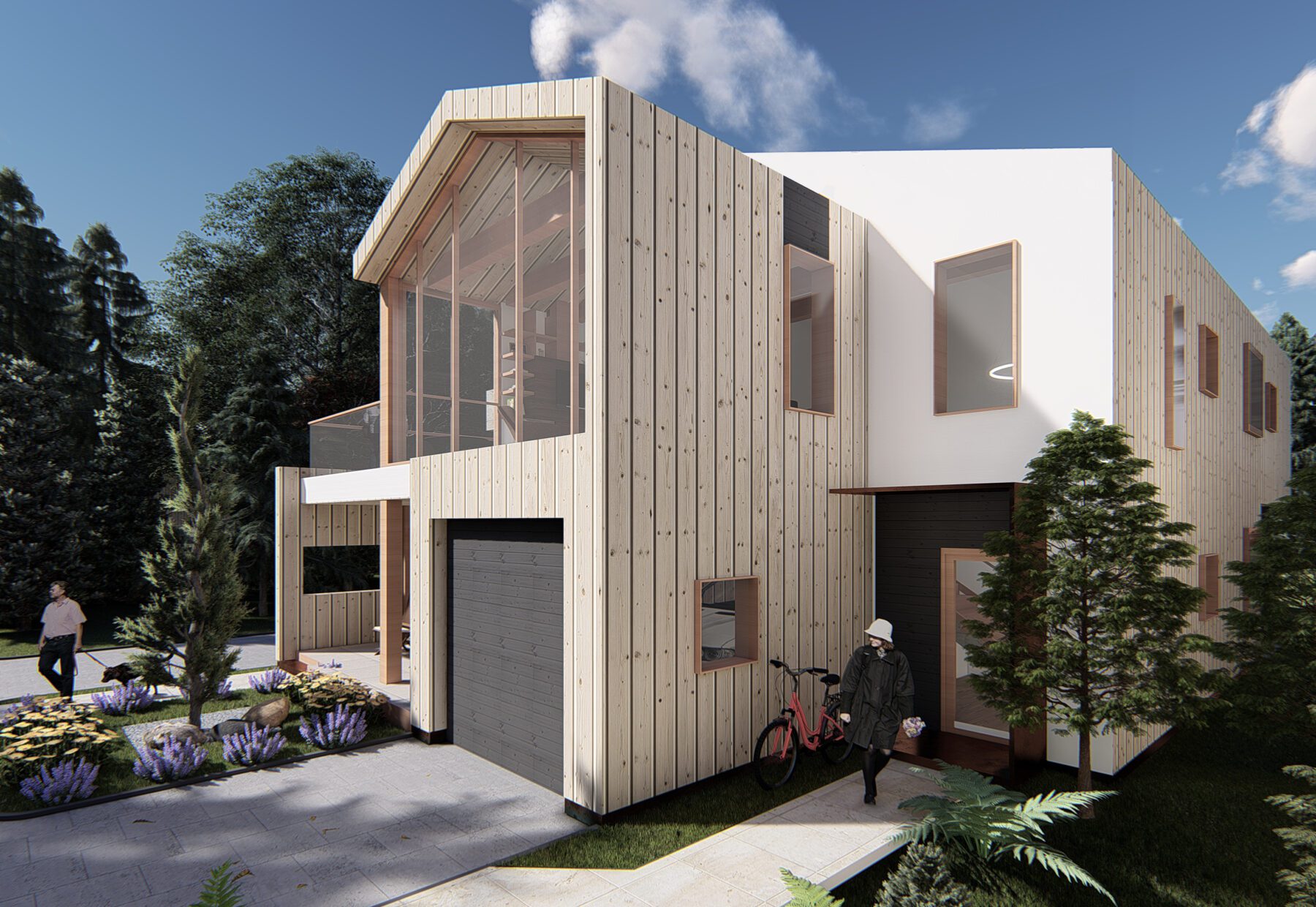 El diseño incorpora elementos verdes además de un jardín privado para cada casa. Usamos transparencia para que los espacios sociales se extiendan al exterior. Esto crea una extensión de la casa e introduce luz natural en los espacios interiores.