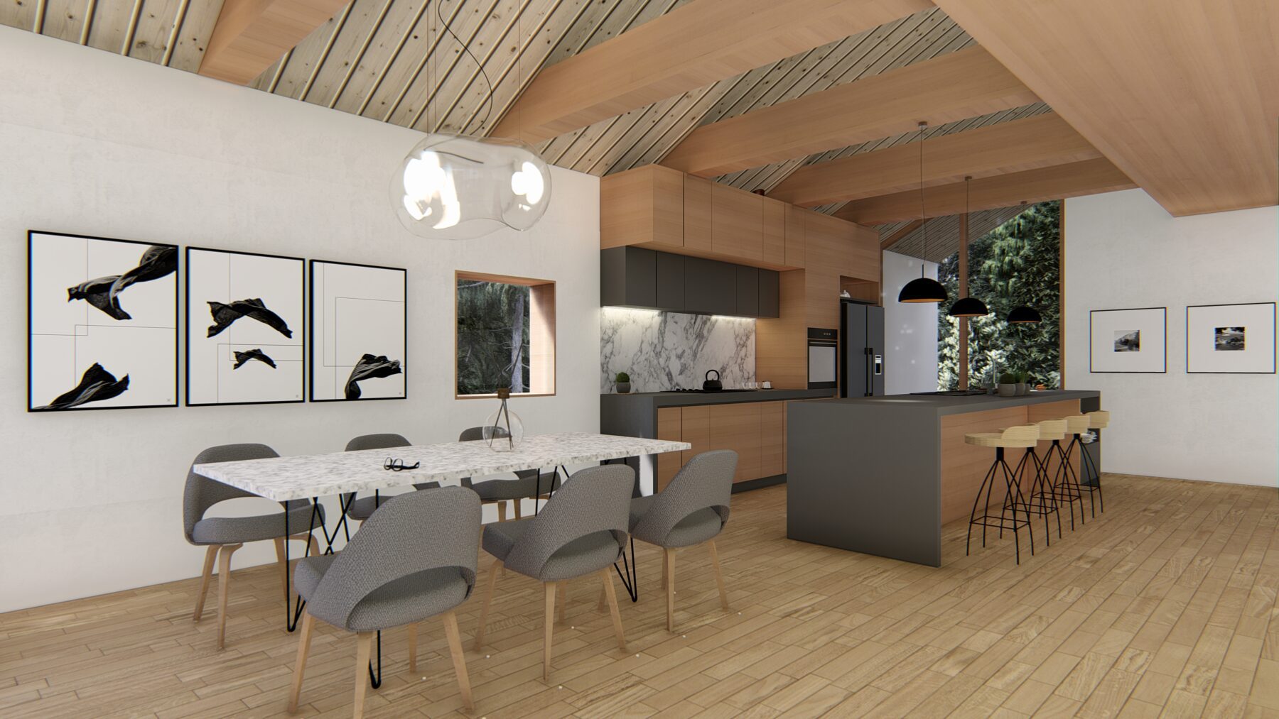 El diseño incorpora elementos verdes además de un jardín privado para cada casa. Usamos transparencia para que los espacios sociales se extiendan al exterior. Esto crea una extensión de la casa e introduce luz natural en los espacios interiores.