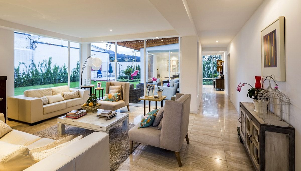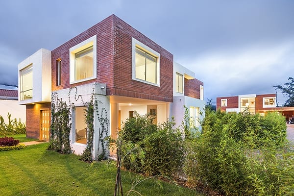 El proyecto consiste en casas de dos plantas. El juego volumétrico fue importante para crear ambientes de doble altura que generen amplitud. Usamos estos volúmenes también para crear las múltiples fachadas dentro del proyecto: calle principal, conexión al jardín y fachada trasera, haciendo la transparencia entre los espacios, invitando a la naturaleza al interior y el uso de la luz natural.