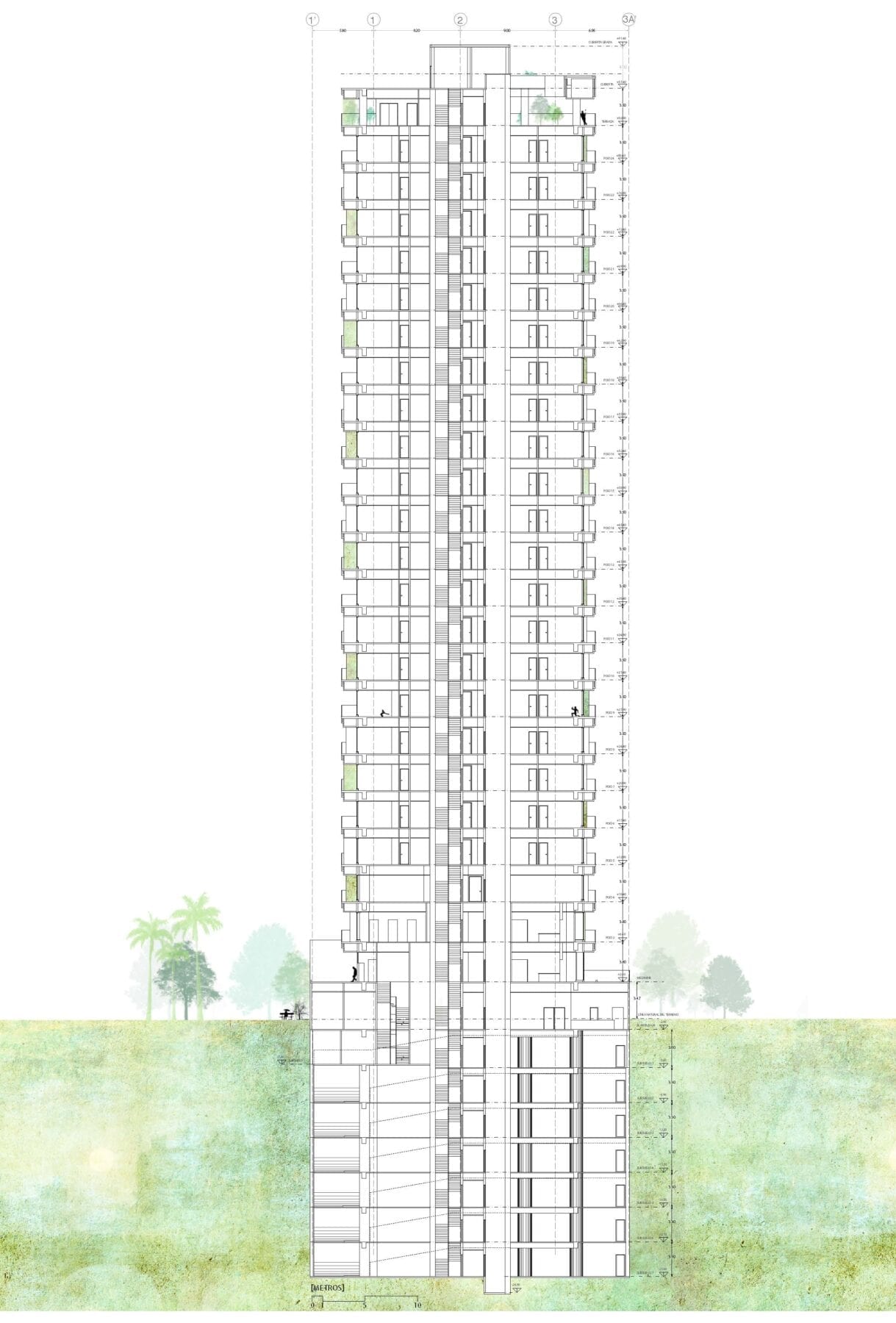 Trabajo en colaboración con Uribe & Schwarzkopf. Lepppanen + Anker Arquitectura diseñó la fachada y la volumetría conceptual del edificio.