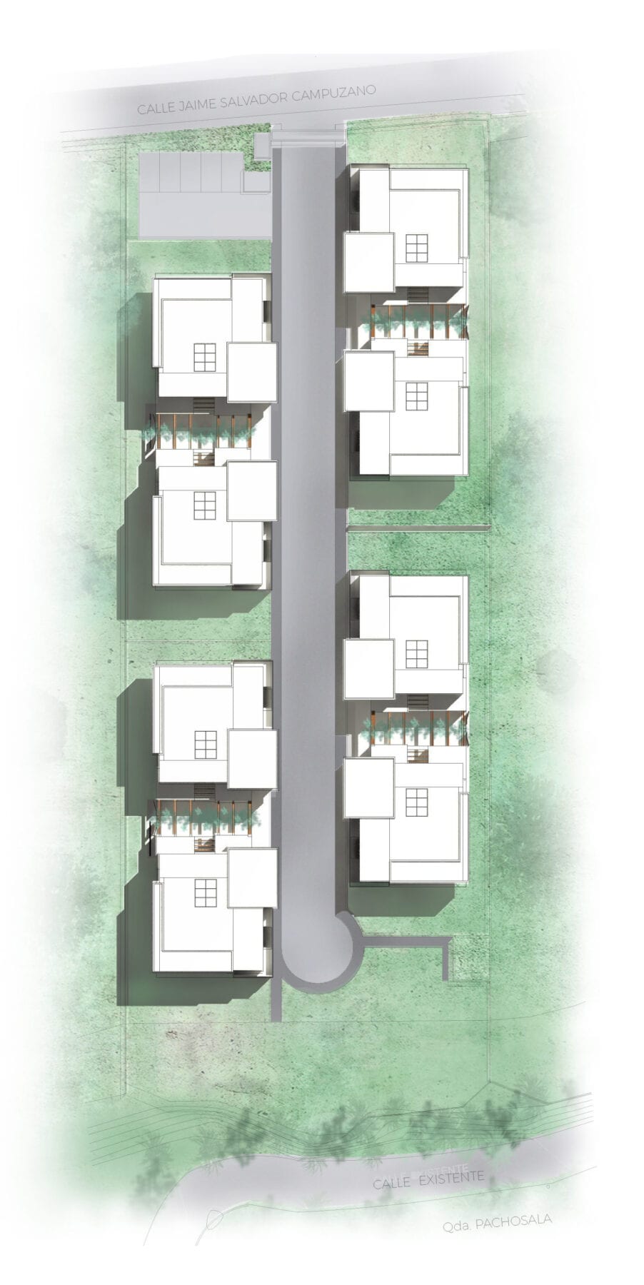 El proyecto Pachosala consiste en el diseño de fachadas de 8 casas privadas en un conjunto cerrado en la urbanización Pachosala. El diseño de fachada consiste en 2 tipos de volumetrías según los el plano de distribución. Volumetría que utiliza materiales cálidos, duraderos y con toque industrial.