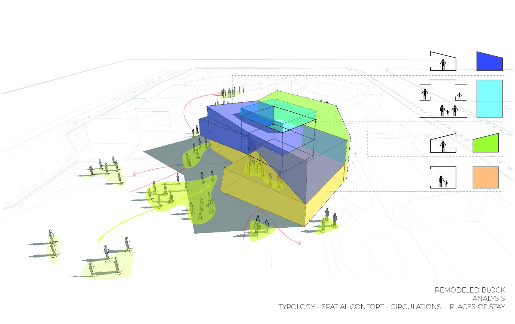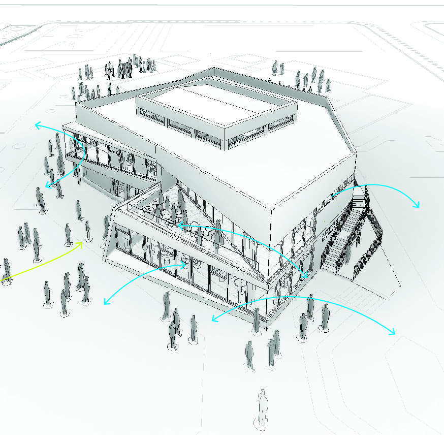 This was achieved mainly through the rotation of new volumes and the location of transparent facades. This approach allowed us to create a radically new building that at the same time provides a functional space, with natural and exciting light for students to learn.