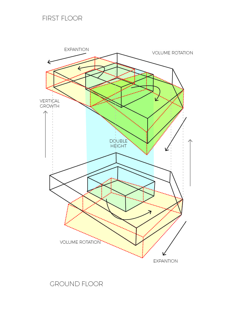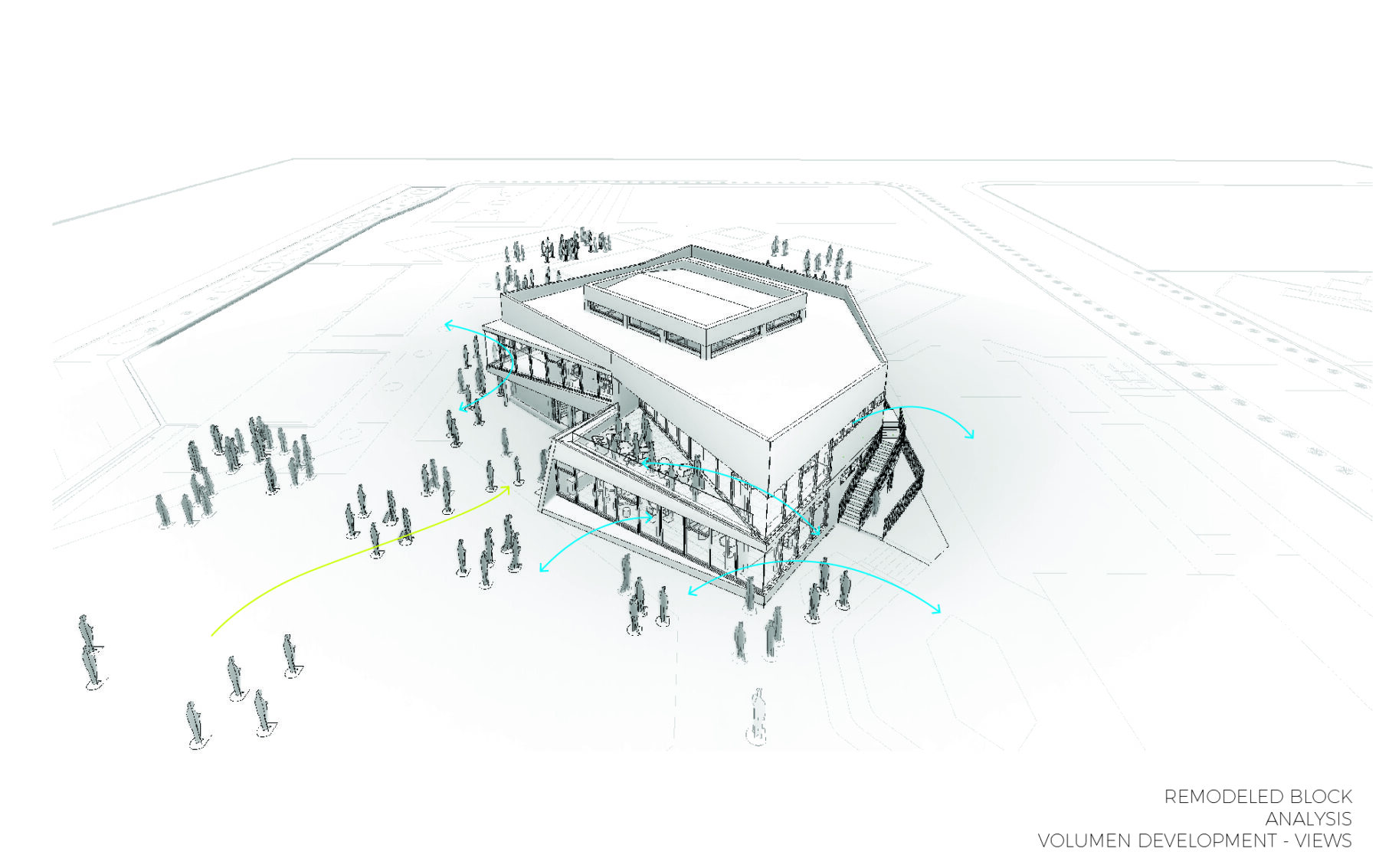 This was achieved mainly through the rotation of new volumes and the location of transparent facades. This approach allowed us to create a radically new building that at the same time provides a functional space, with natural and exciting light for students to learn.