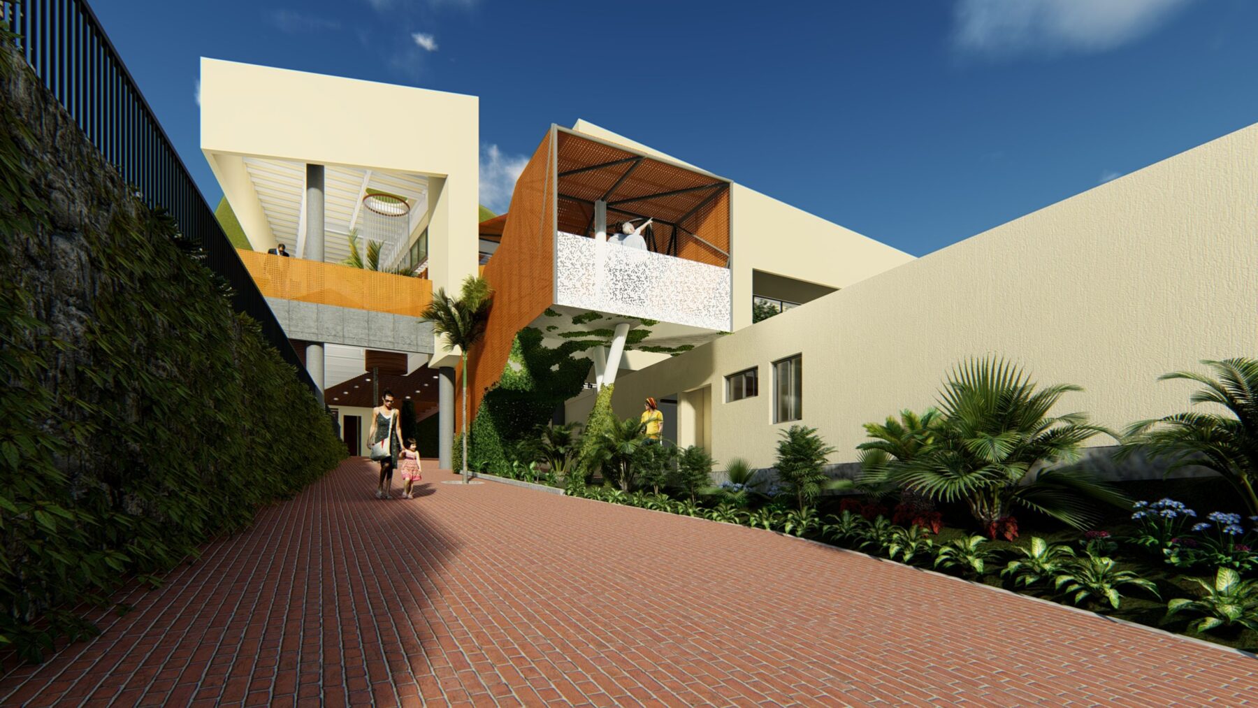 Liceo Campoverde is a school located in a valley near the capital. Their main objective is to promote sustainability through educational and constructive methods. Leppanen Anker was commissioned to develop a master plan for the expansion of the school which includes a library, cafeteria, auditorium, block for high school, and several outdoor areas.