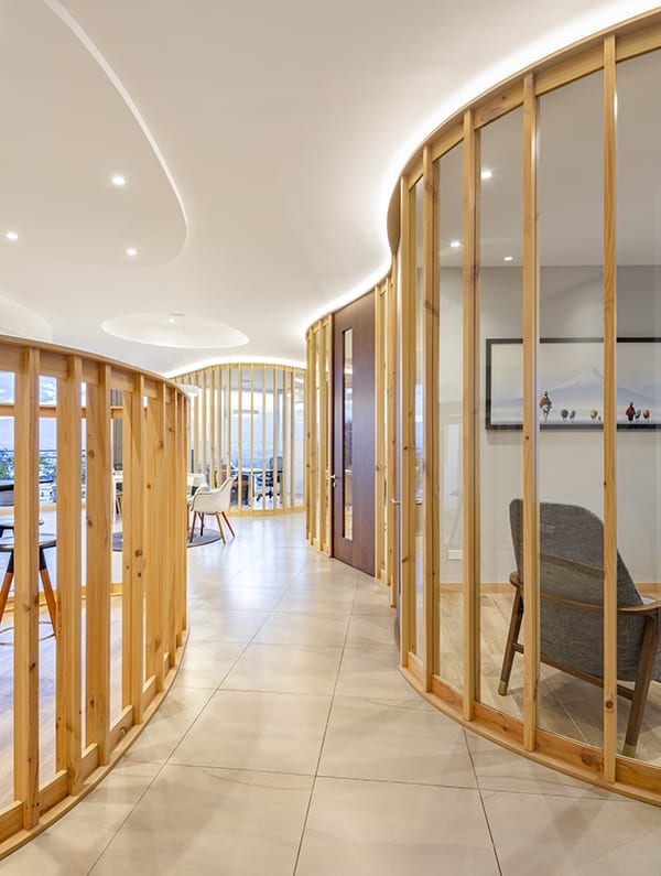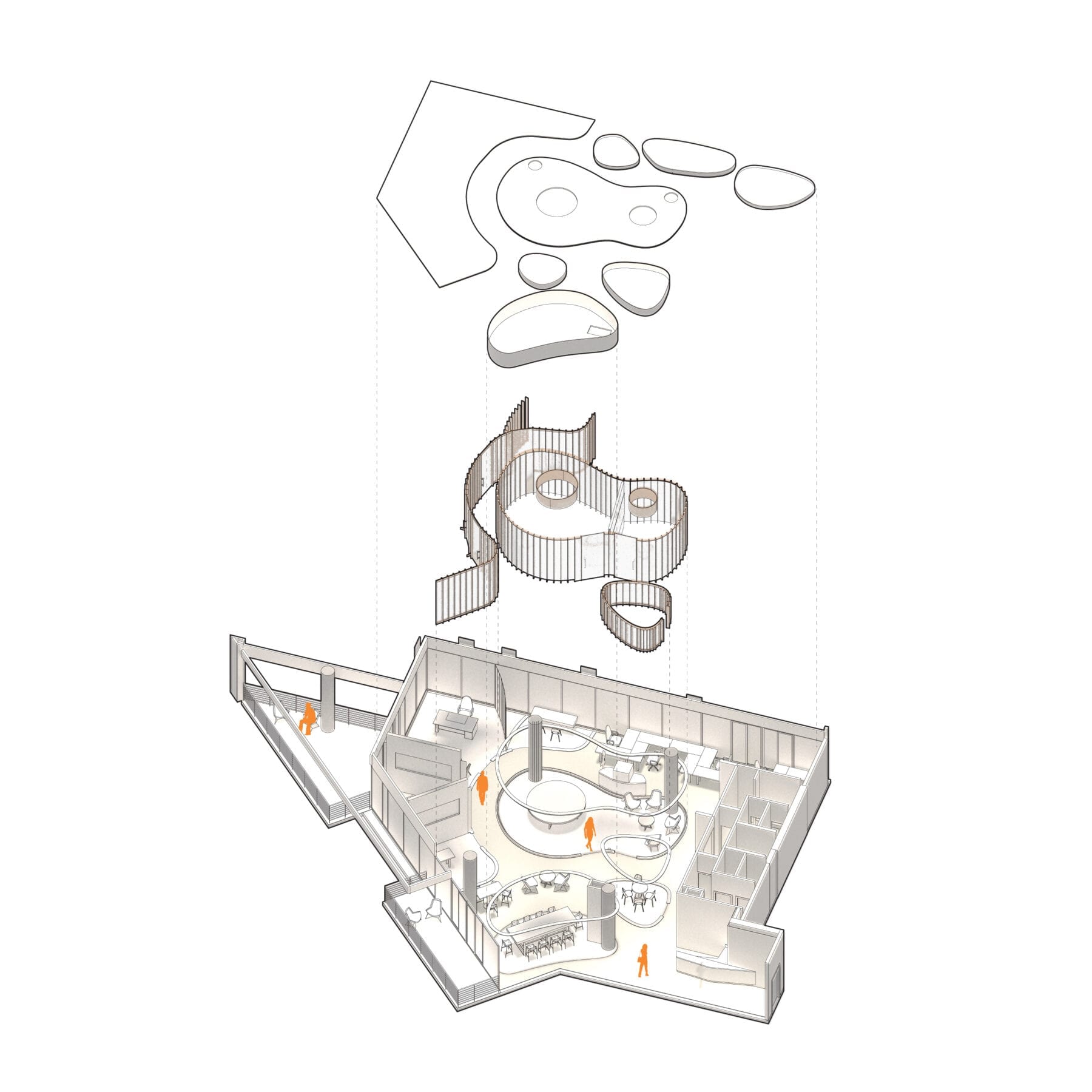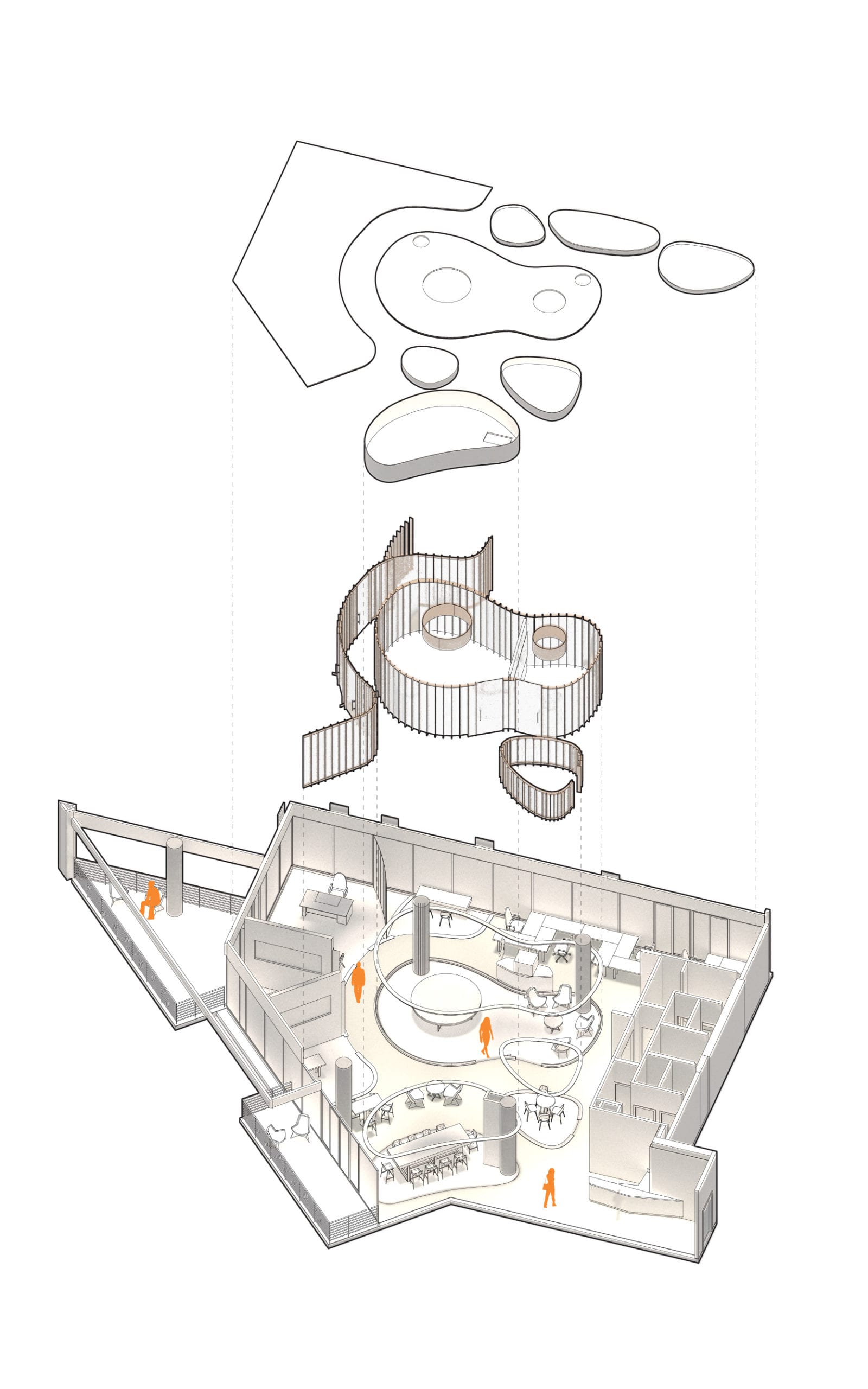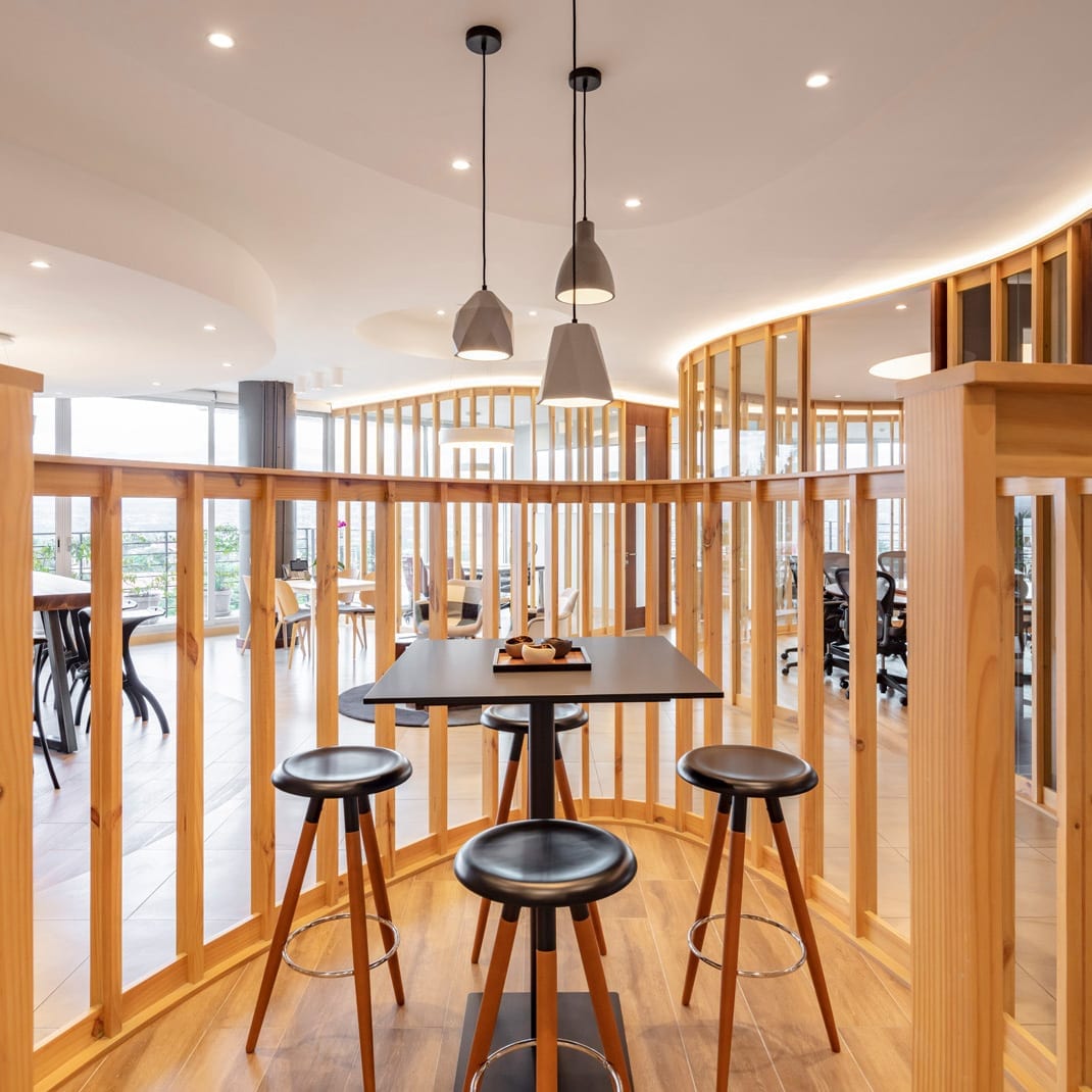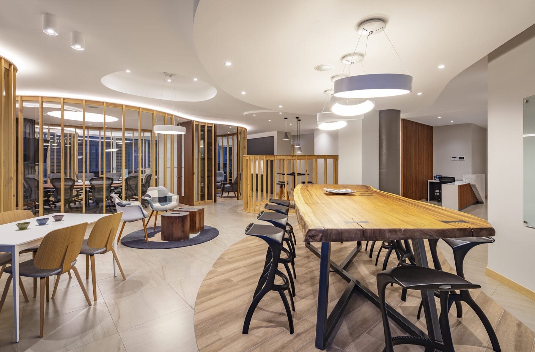 Is a workspace whose architectural concept is organic fluidity, which distributes the areas private and open to creating is modern and clean space. Its curved shapes allow turning the traditional office creating new environments for its users.