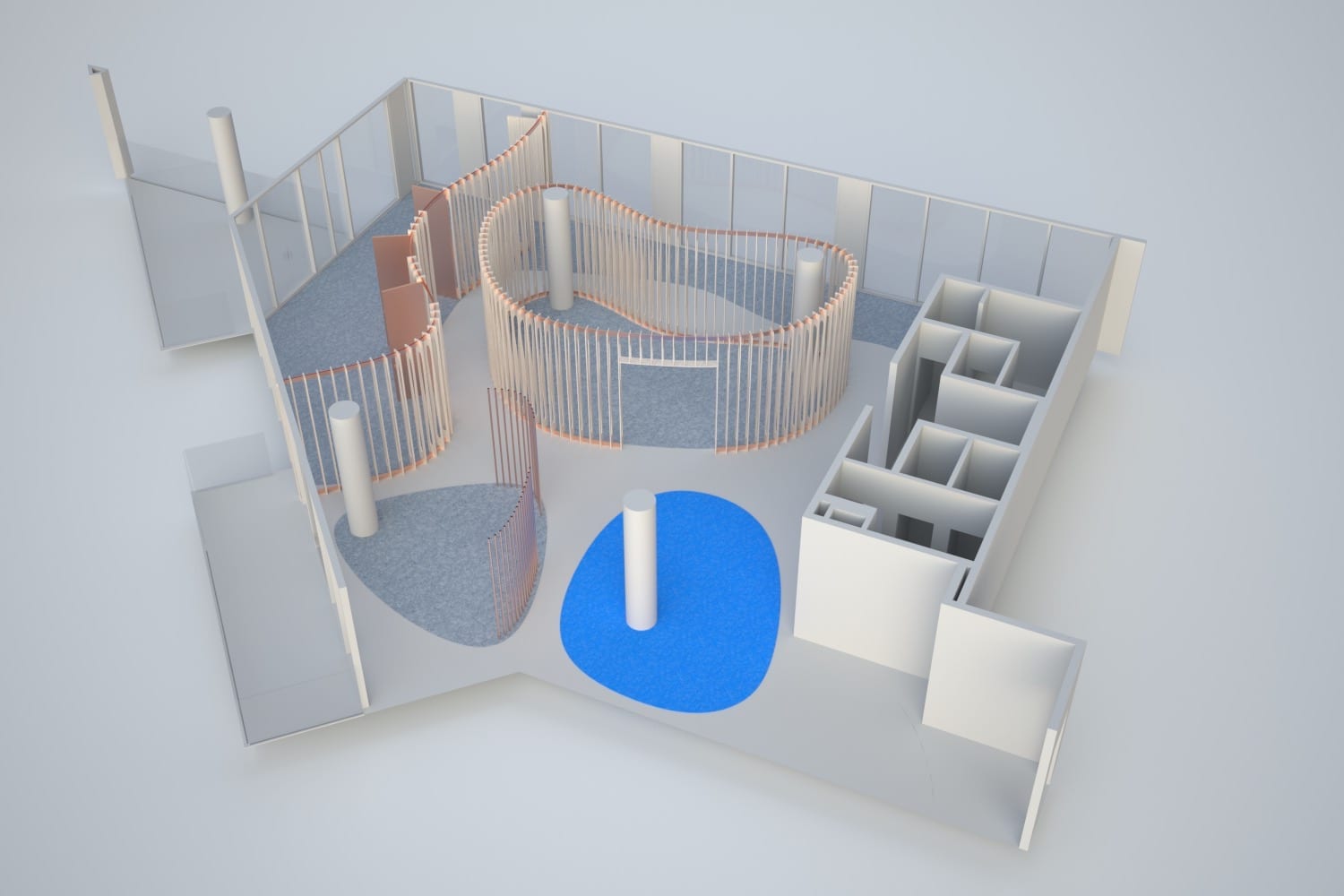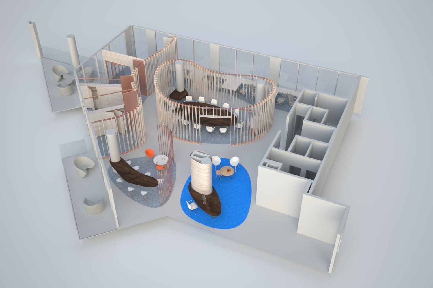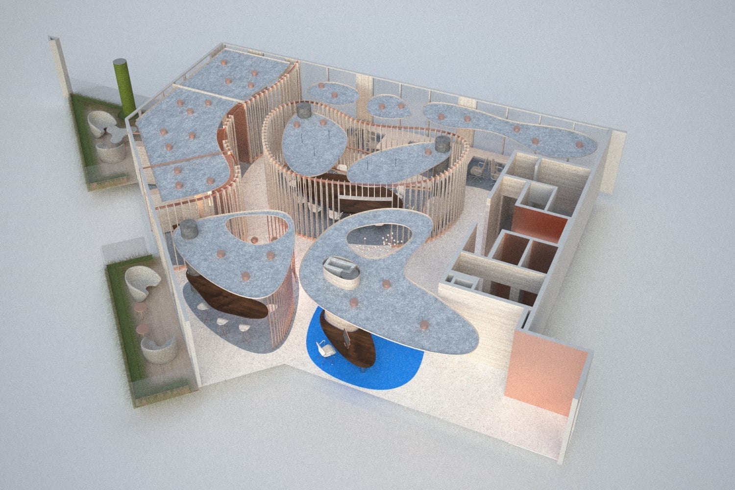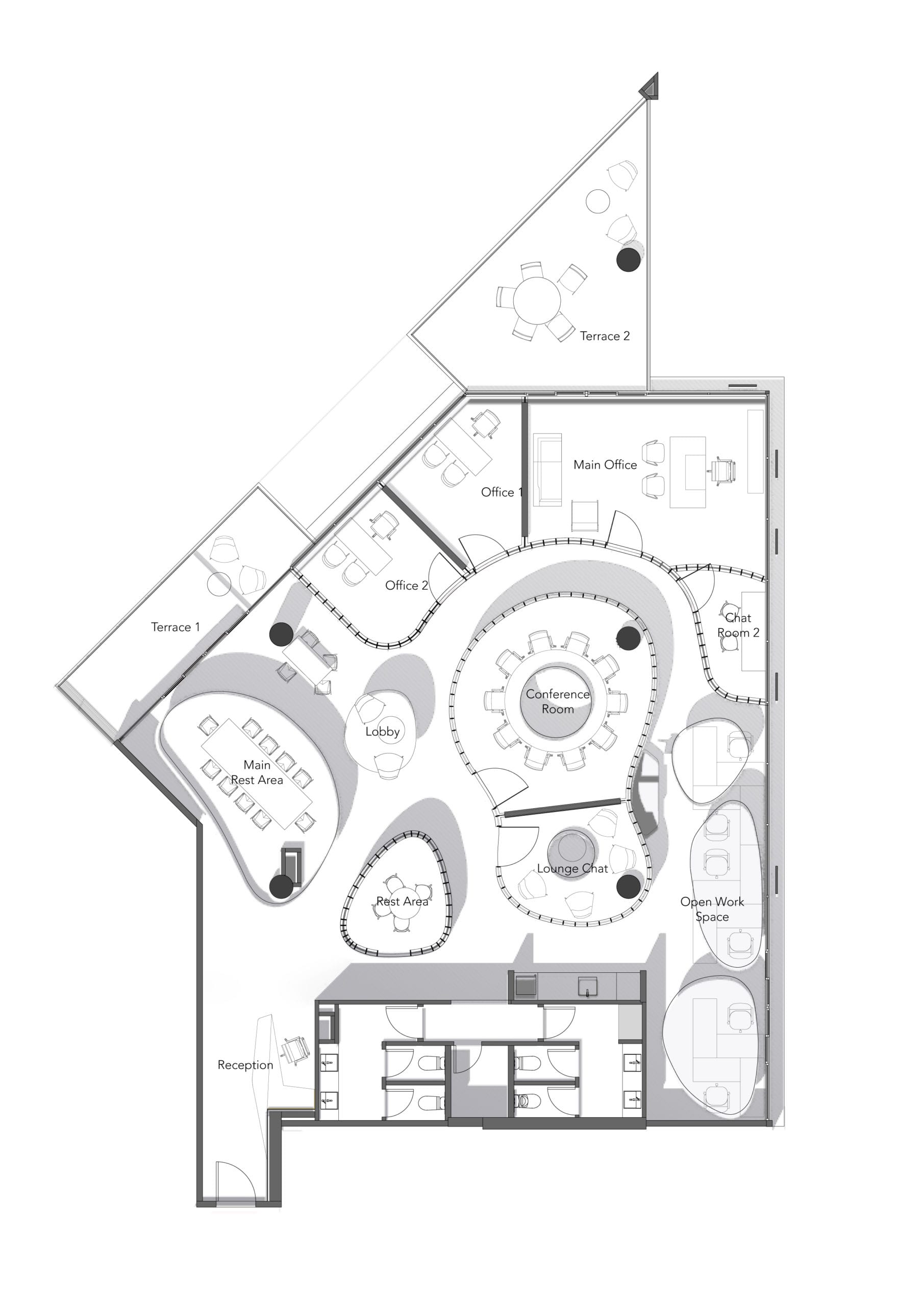 Is a workspace whose architectural concept is organic fluidity, which distributes the areas private and open to creating is modern and clean space. Its curved shapes allow turning the traditional office creating new environments for its users.