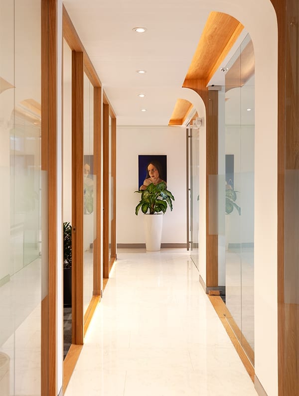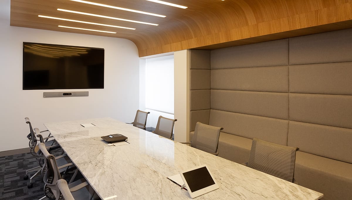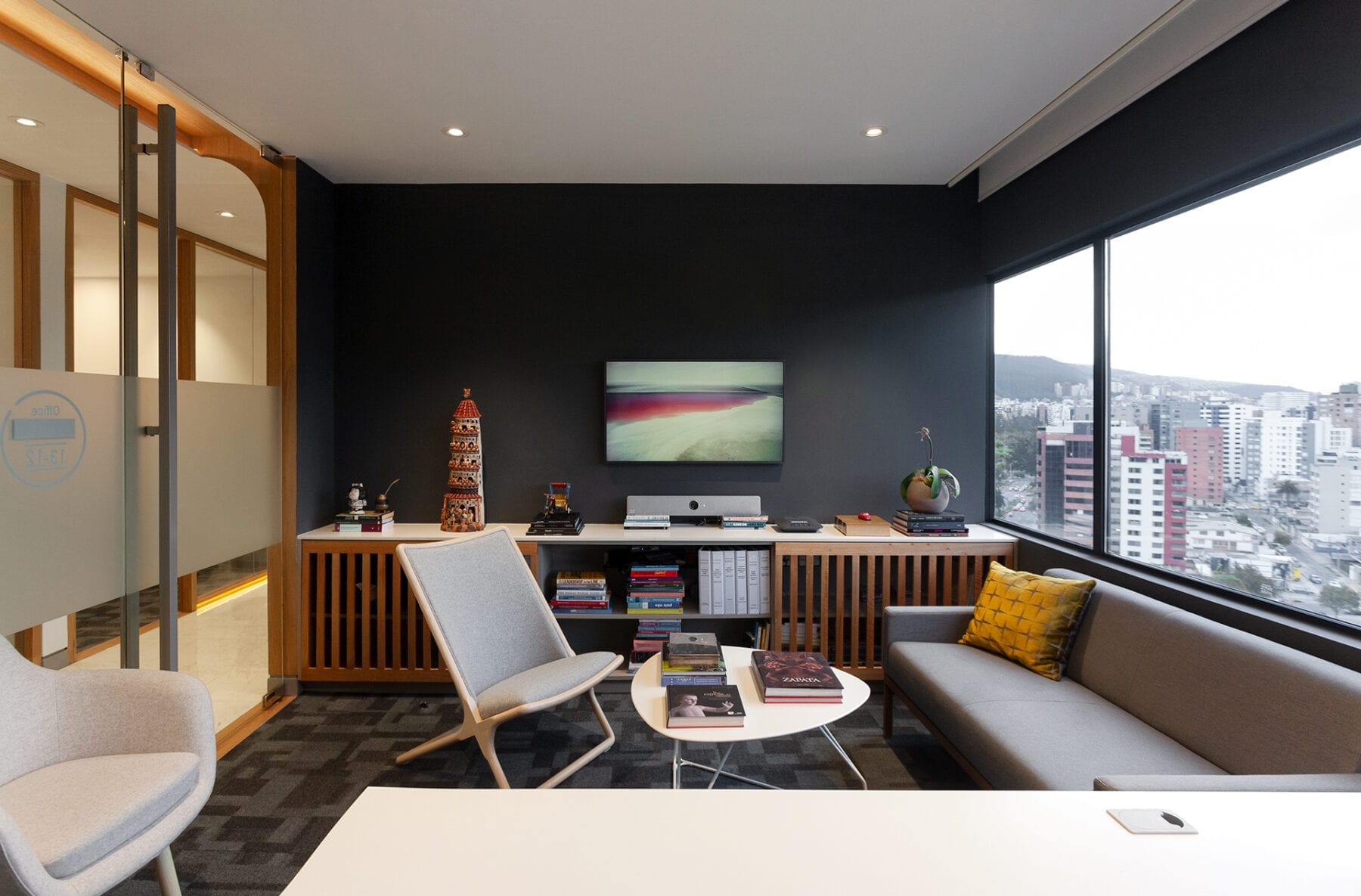 The project has individual offices with transparency for a conventional use of natural light and social and community areas for the well-being of the workers. As part of this project, several elements, and materials such as wood were implemented to warm the space and create a spatial configuration with indirect light and some walls were used to display art. In addition, the subtle materials implemented in the offices in addition to the curved elements allow for a nice visual relationship between spaces and it creates an open and unified environment.