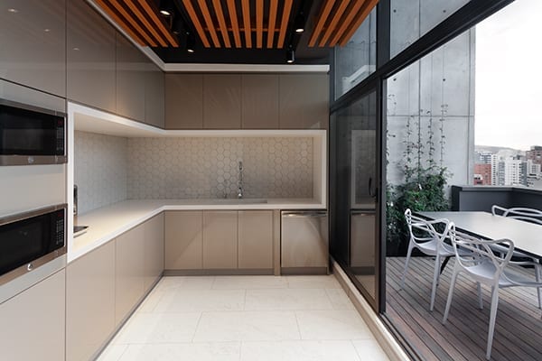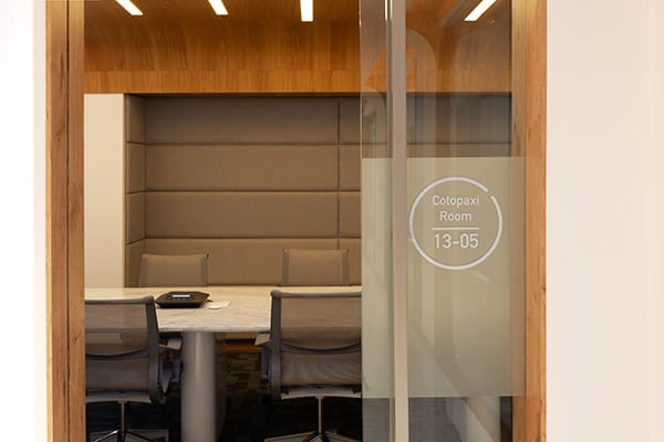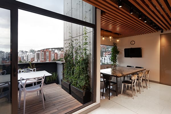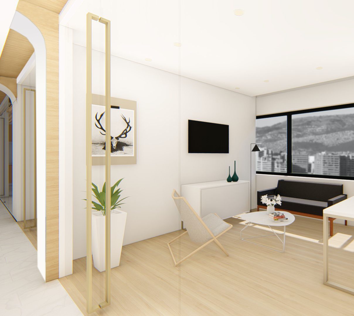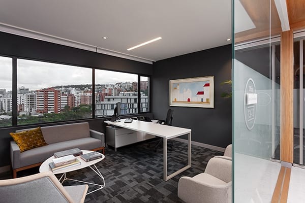 The World Bank Group Offices intend to provide 500 m2 on the 13th floor of the “Torre SEIS” tower building in Quito, Ecuador on Avenida 6 de Diciembre. The new space will house approximately 16 employees in private and open offices, as well as support spaces such as conference rooms, meeting rooms, cafeteria, reception, common areas of support facilities, etc. All designed spaces comply with the bank’s new security standards. The internal space was developed based on curves in the corners with the idea of creating an elegant and simple environment for the new offices of the WBG.