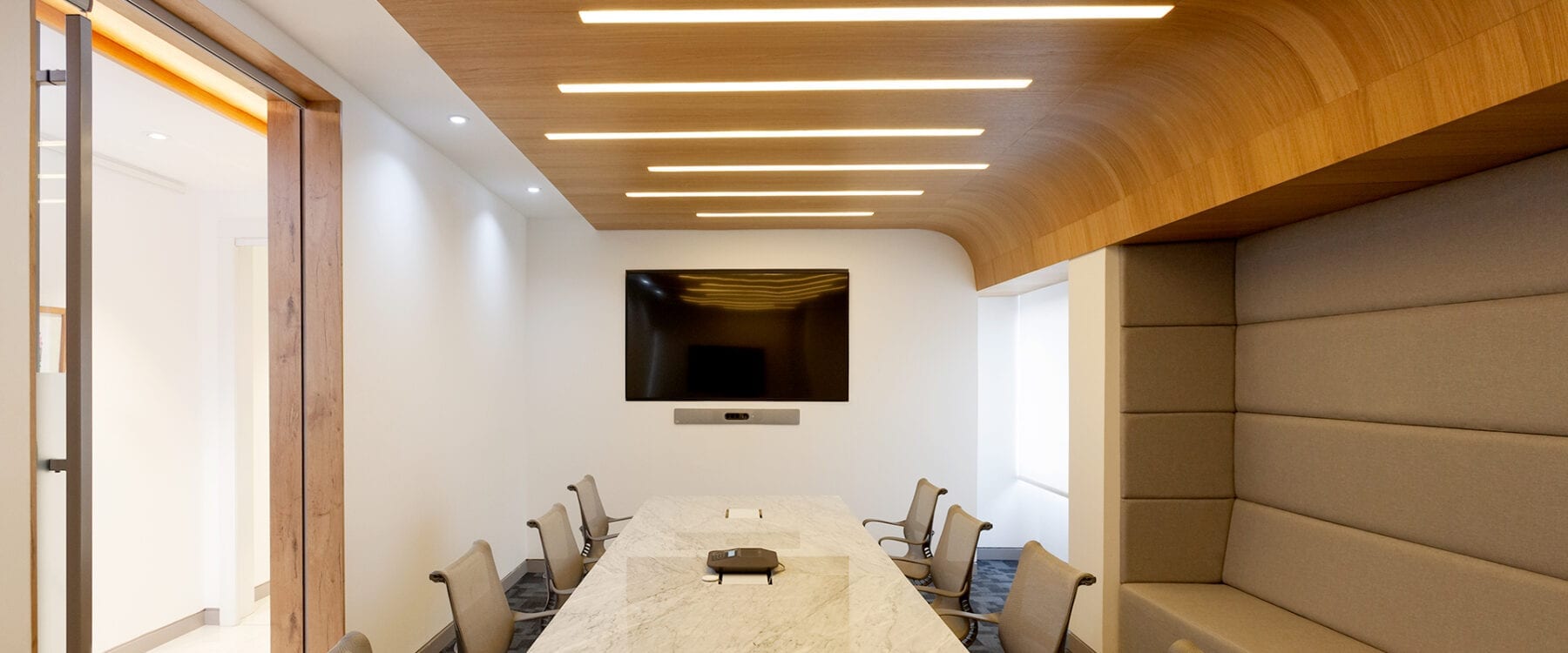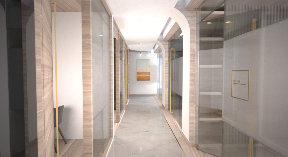 The project has individual offices with transparency for a conventional use of natural light and social and community areas for the well-being of the workers. As part of this project, several elements, and materials such as wood were implemented to warm the space and create a spatial configuration with indirect light and some walls were used to display art. In addition, the subtle materials implemented in the offices in addition to the curved elements allow for a nice visual relationship between spaces and it creates an open and unified environment.