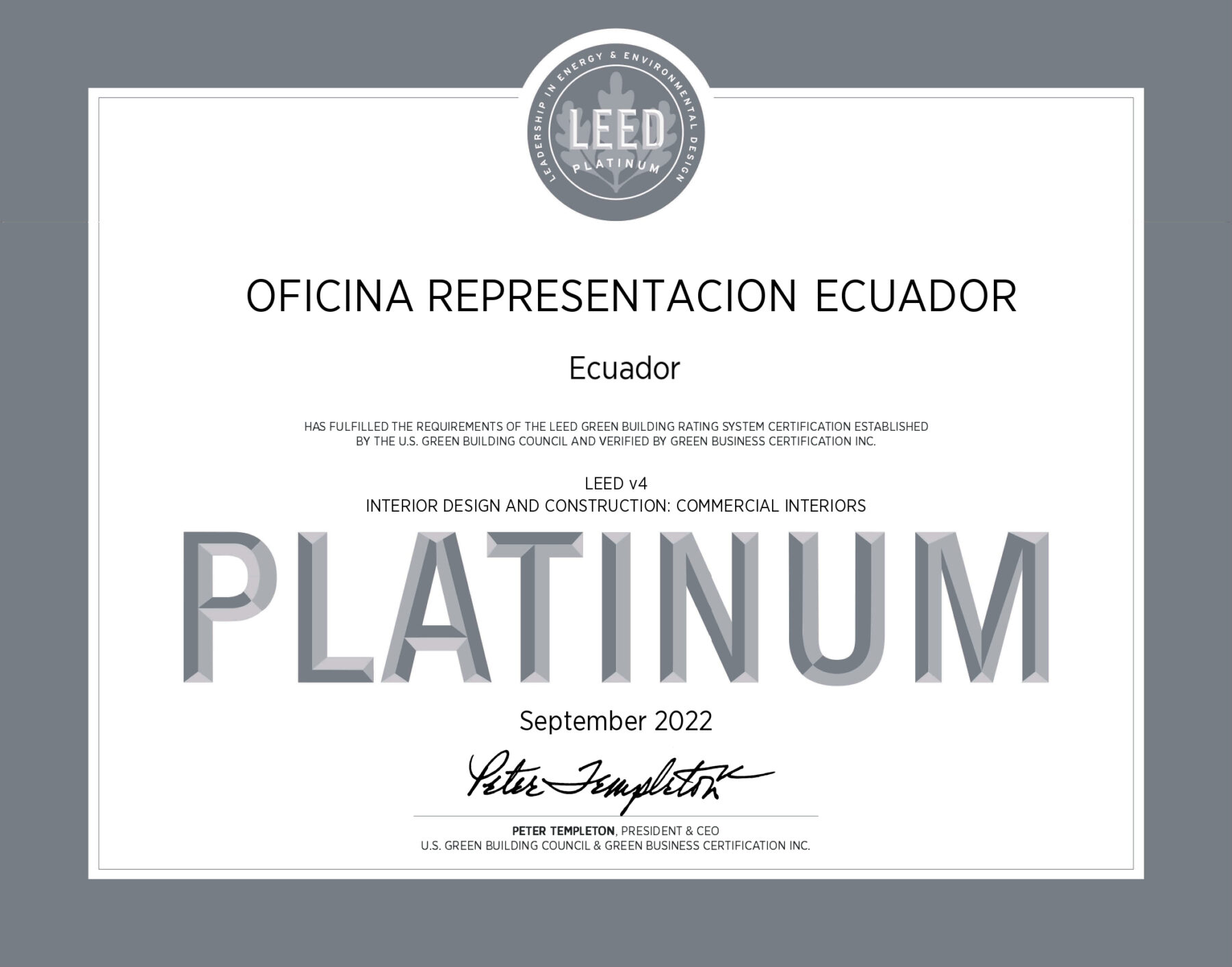 El término arquitectura humanizada es fundamental. El concepto de diseño fluido se basa en encontrar un equilibrio entre los elementos naturales y los elementos construidos. Con identidad local en el uso de materiales, arte y ejecución. ¡El proyecto obtuvo 3 certificaciones sostenibles (LEED Platinum, EDGE Advance y FITWELL)! Certificación en Sostenibilidad y Eficiencia Energética, y en colaboración con todo el equipo de planificación, el proyecto obtuvo las certificaciones LEED Platinum, EDGE advance y FITWELL. Son las primeras oficinas en Ecuador en obtener tan altos niveles de prestigio tecnológico eficiente. Gracias al trabajo conjunto en sustentabilidad se lograron los siguientes niveles de ahorro: Reciclaje de materiales durante la construcción: 51% – Agua 45% – Energía 22%