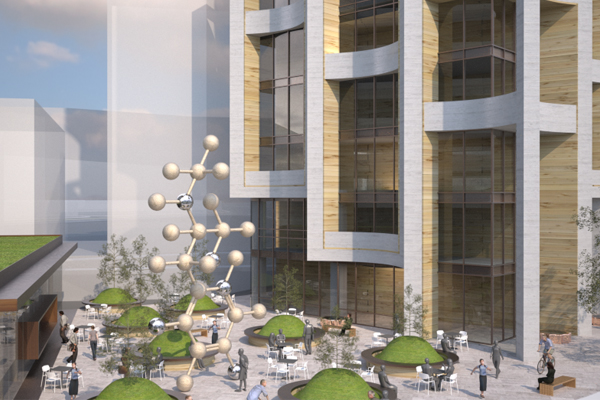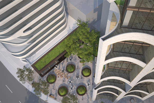 The double height between floors allows for natural light and great views of the city. A ground floor plaza has been developed in order to activate and create a more dynamic environment between people walking by and building occupants