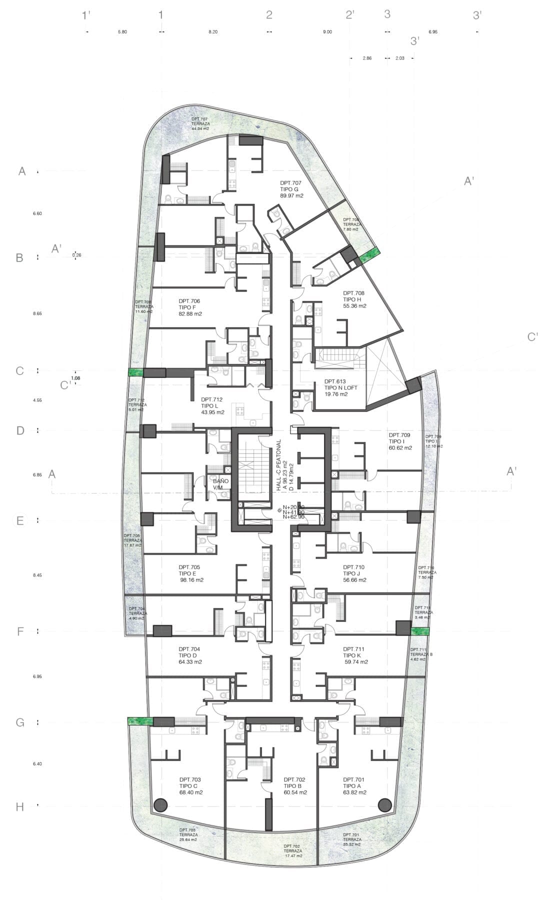 Work in collaboration with Uribe & Schwarzkopf. Lepppanen + Anker Arquitectura designed the facade and the volumetric massing concept for the building.